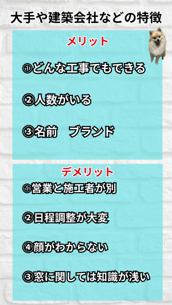 これを見ると大手と地元業者のメリットとデメリットがそっくりそのまま「逆」になっているね。