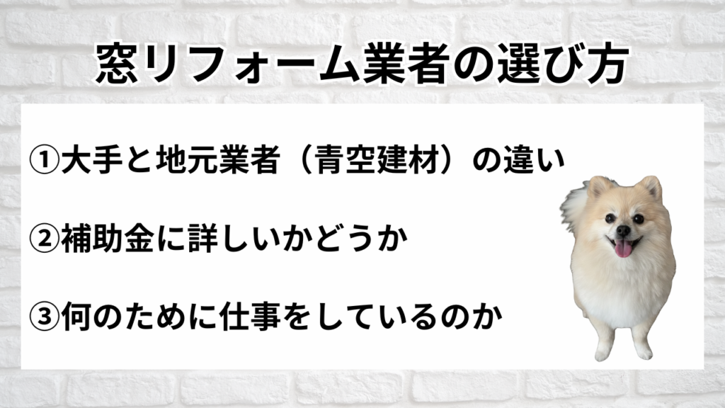 今日は窓リフォームの業者選びで迷っている方向けに案内をしていくね!